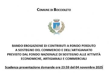 Bando erogazione di contributi a fondo perduto a sostegno del commercio e dell'artig. previsto dal f.do naz.le di sostegno alle attività economiche
