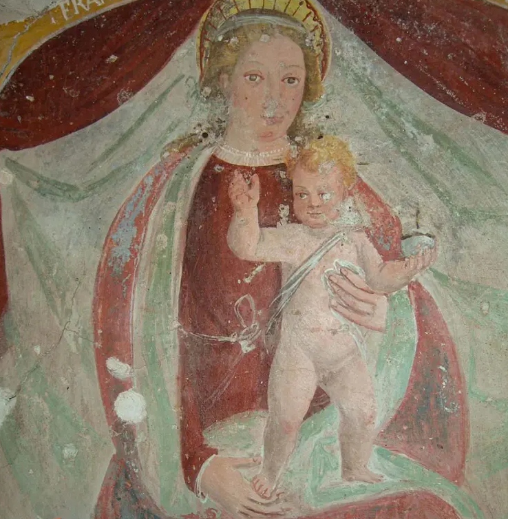 Alla sommità della parete di fondo un'iscrizione riporta il nome del committente dell'opera e la data d'affrescatura: FRANCESCO DI JORDANO DI OLLANZA F.F. 1624. La cappella è stata oggetto di un intervento conservativo da parte della Commissione CAI Varallo "Montagna Antica, montagna da salvare" nel 1992.